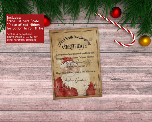 Personalised Santa Letter & Nice List Certificate: Vintage Style Christmas Keepsake