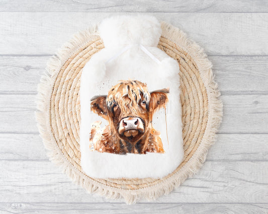 Personalised Hot Water Bottle, Highland Cow Gifts, Gift For Highland Cow Lovers