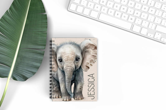 Personalised Safari Elephant A5 Notebook, Elephant Lover Notepad Gift, Teenager School Lined Notebook
