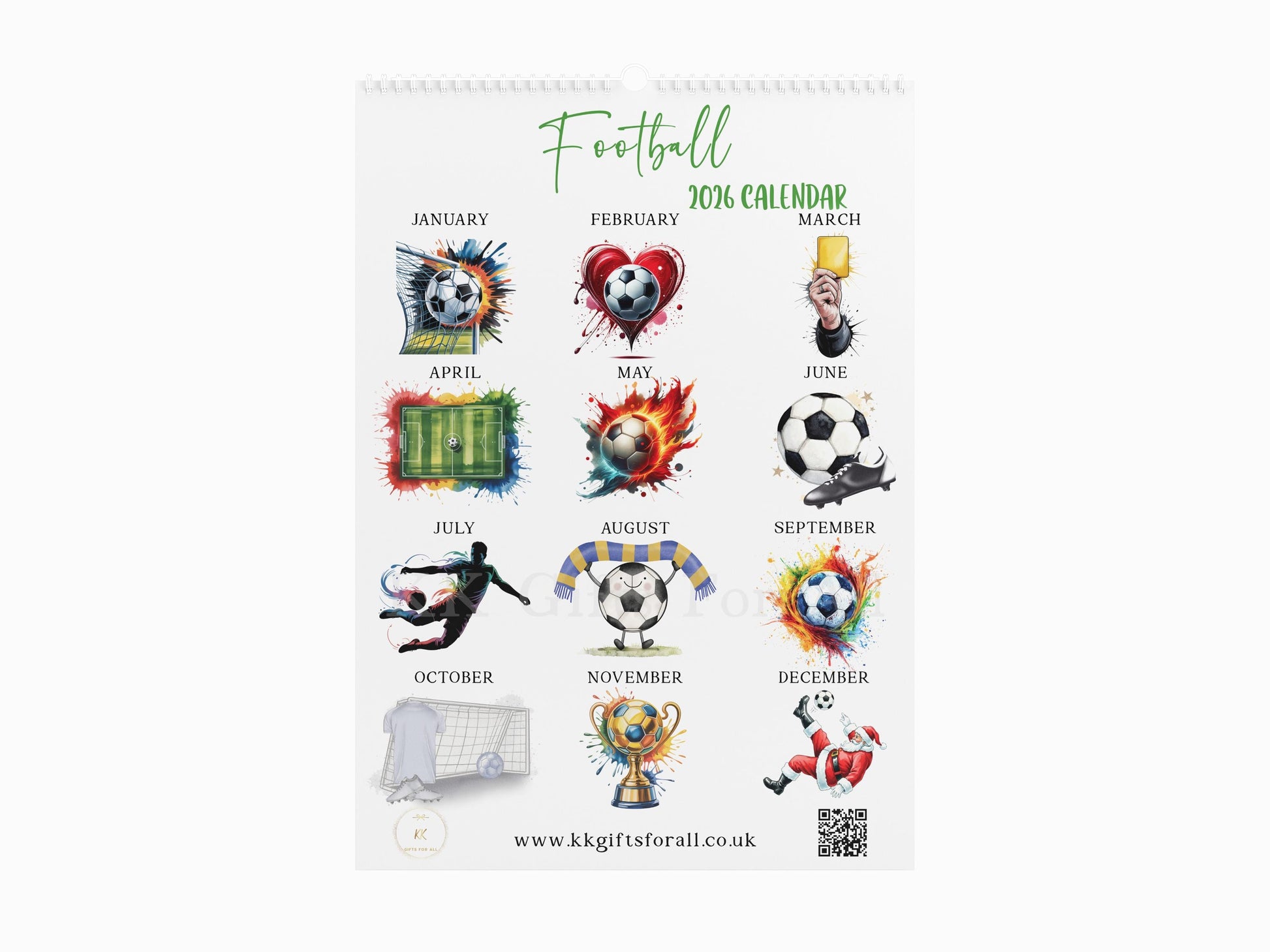 2026 Football Calendar, Football Wall Calendar, Footie Lover Gift, A4 Monthly Planner