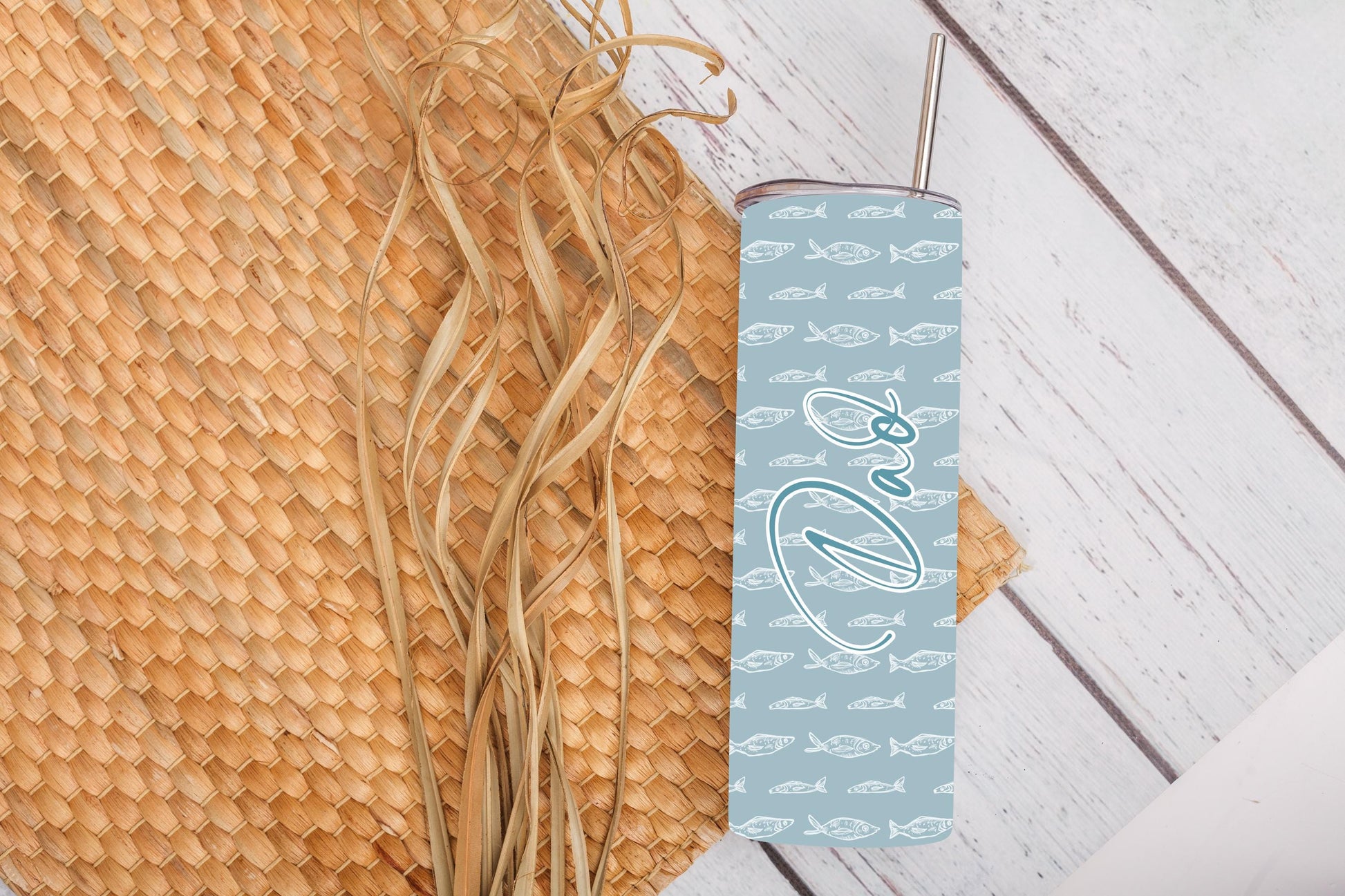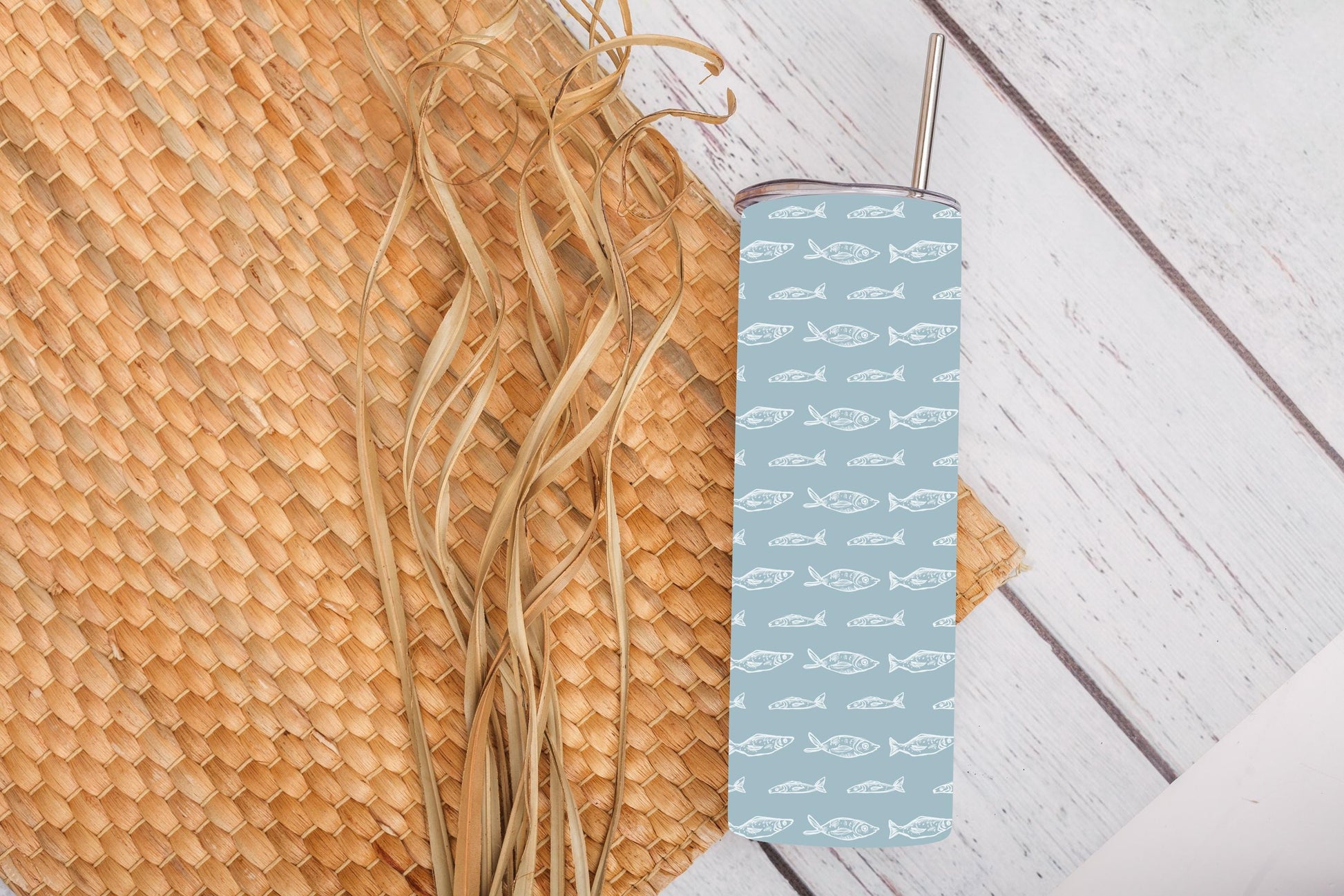 Blue & White Tumbler, Fish Pattern Bottle, Personalised 20oz Tumbler With Box And Aluminium Straw, Sardine Gifts