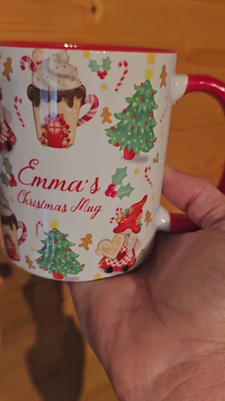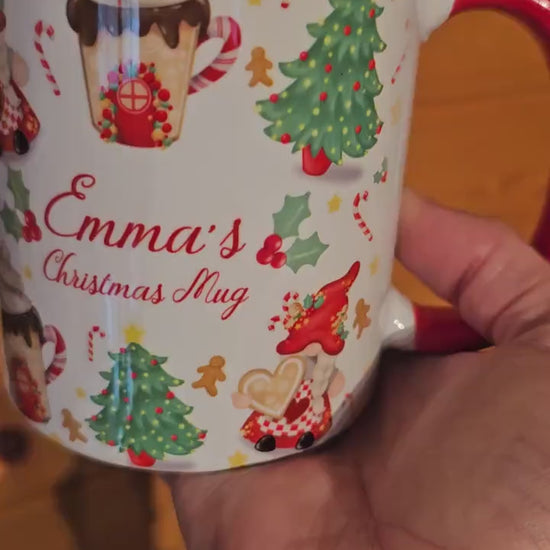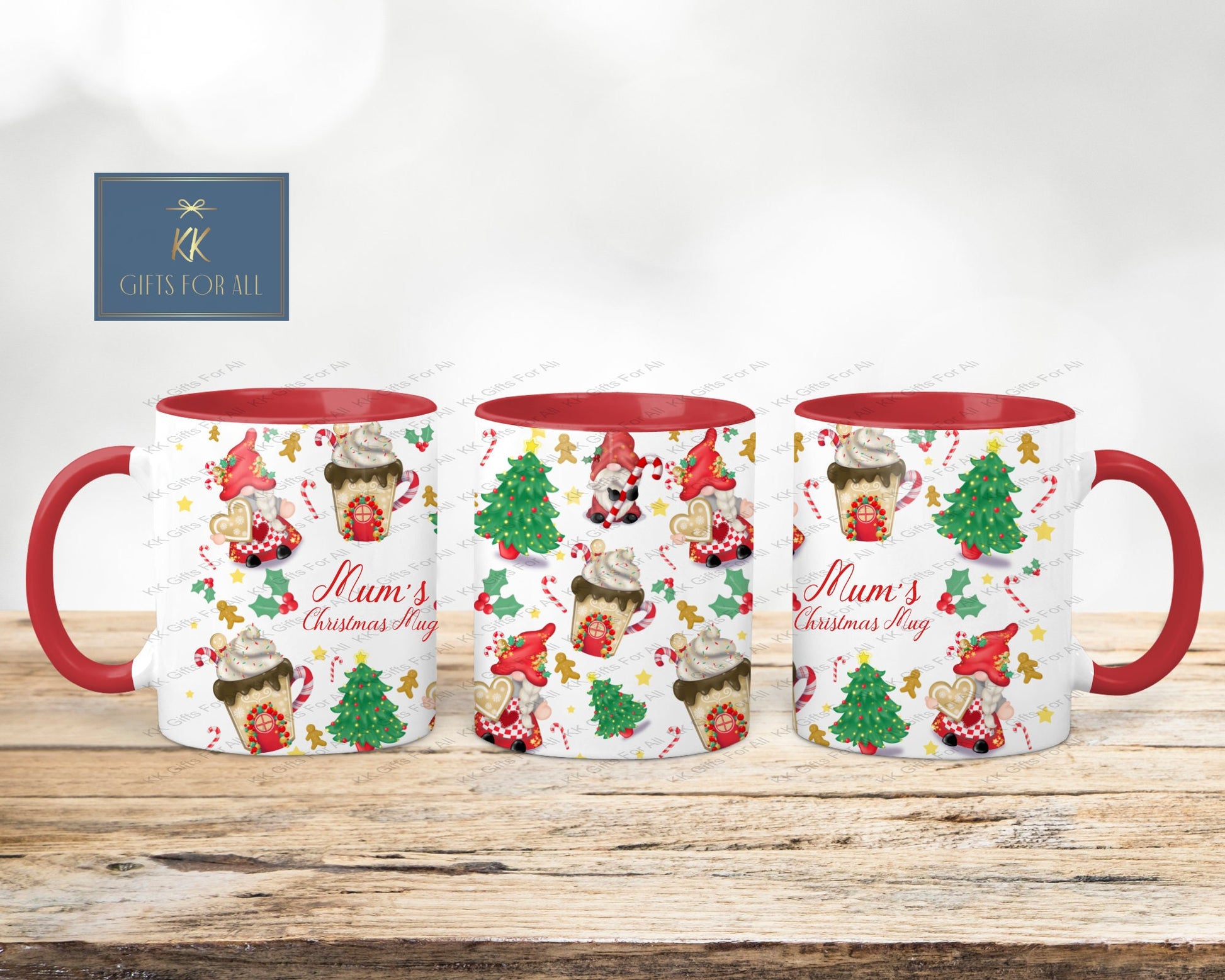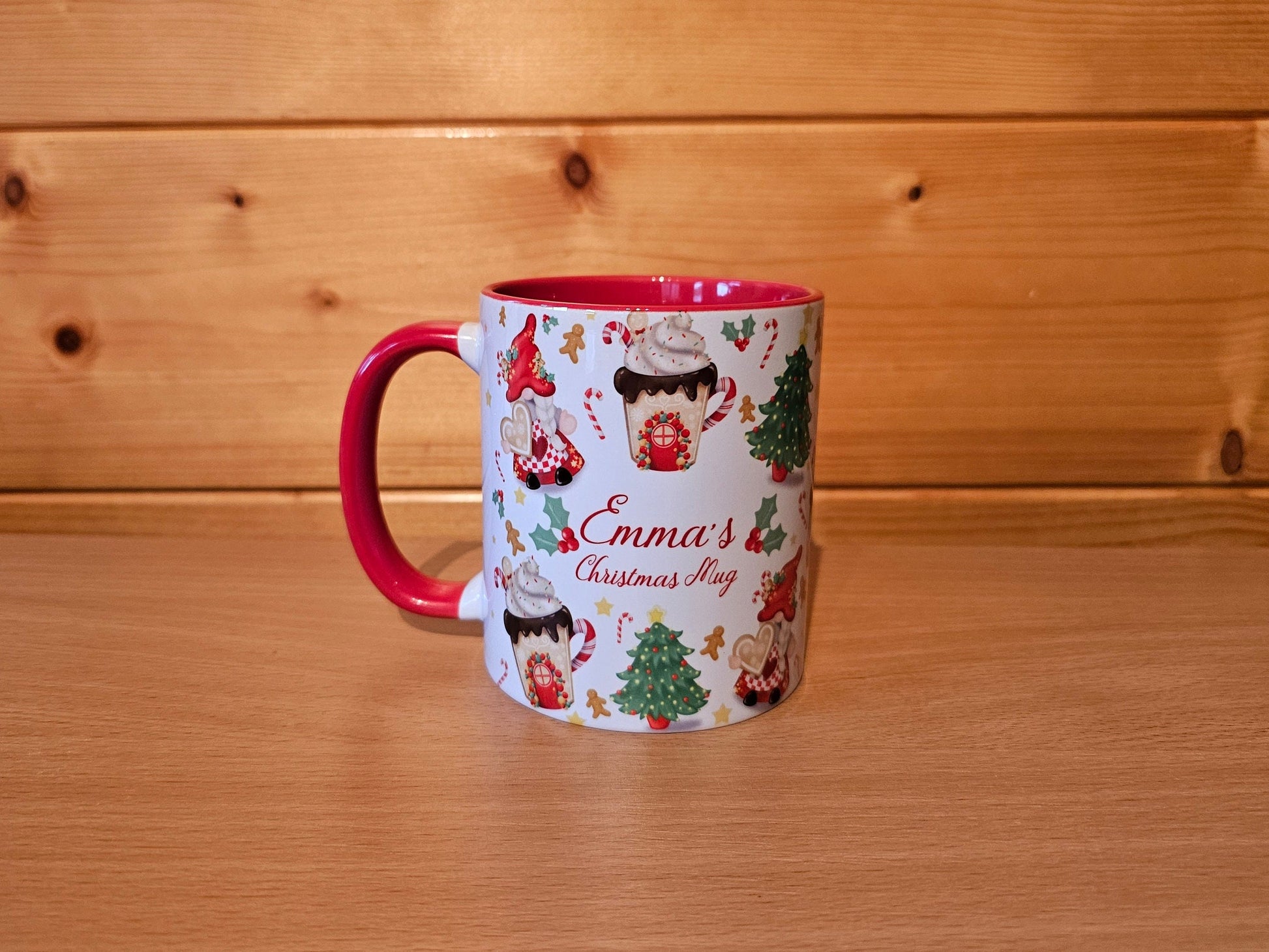 Christmas Gnome Mug, Red Handle Mug, Gonk Christmas Theme, Personalised Mug, Hot Cocoa Mug, Hot Chocolate Movie Mug, Candycane