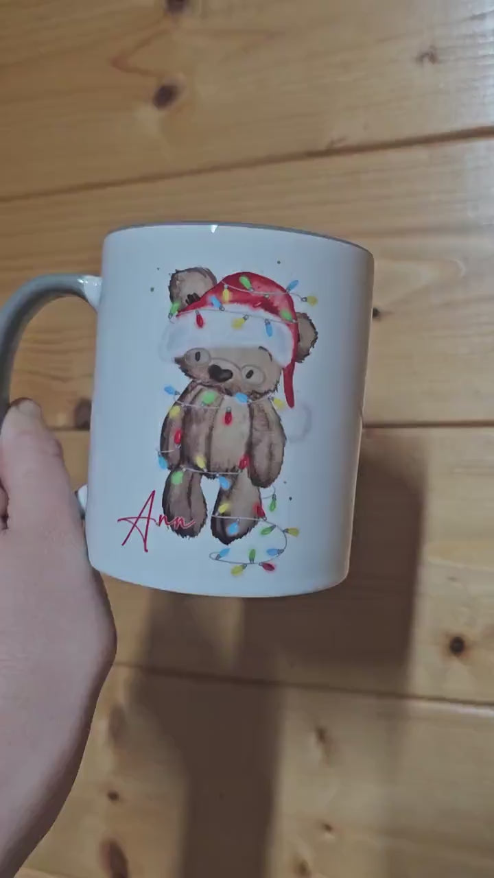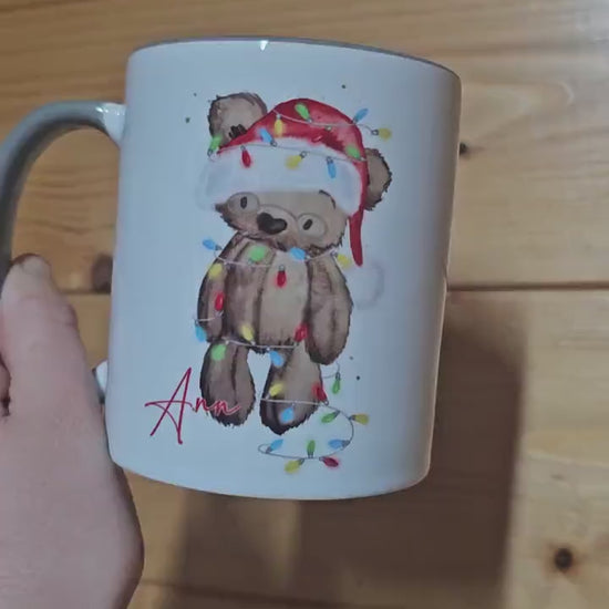 Christmas Mug, Christmas Bear Grey Mug, Personalsied Mug & Coaster