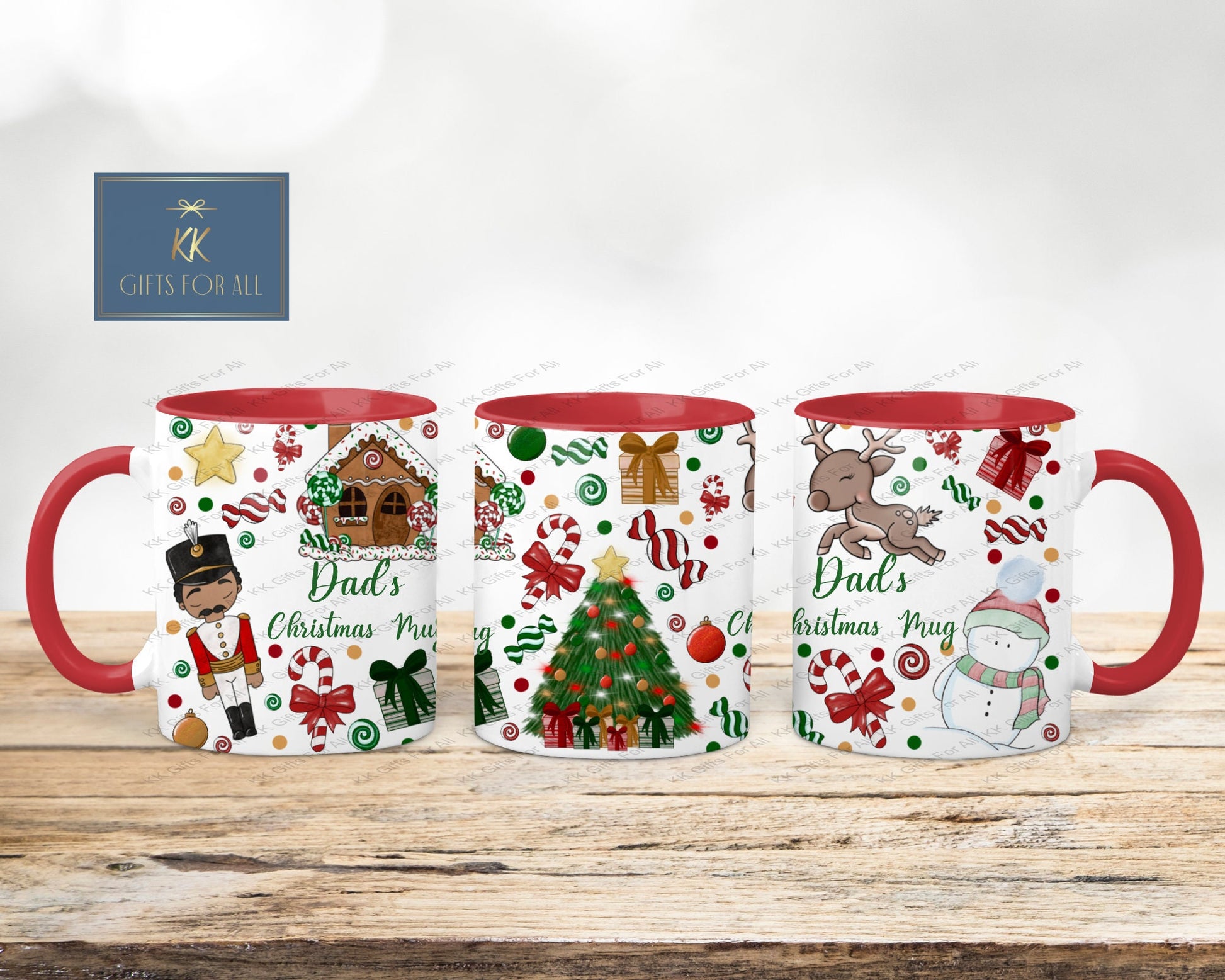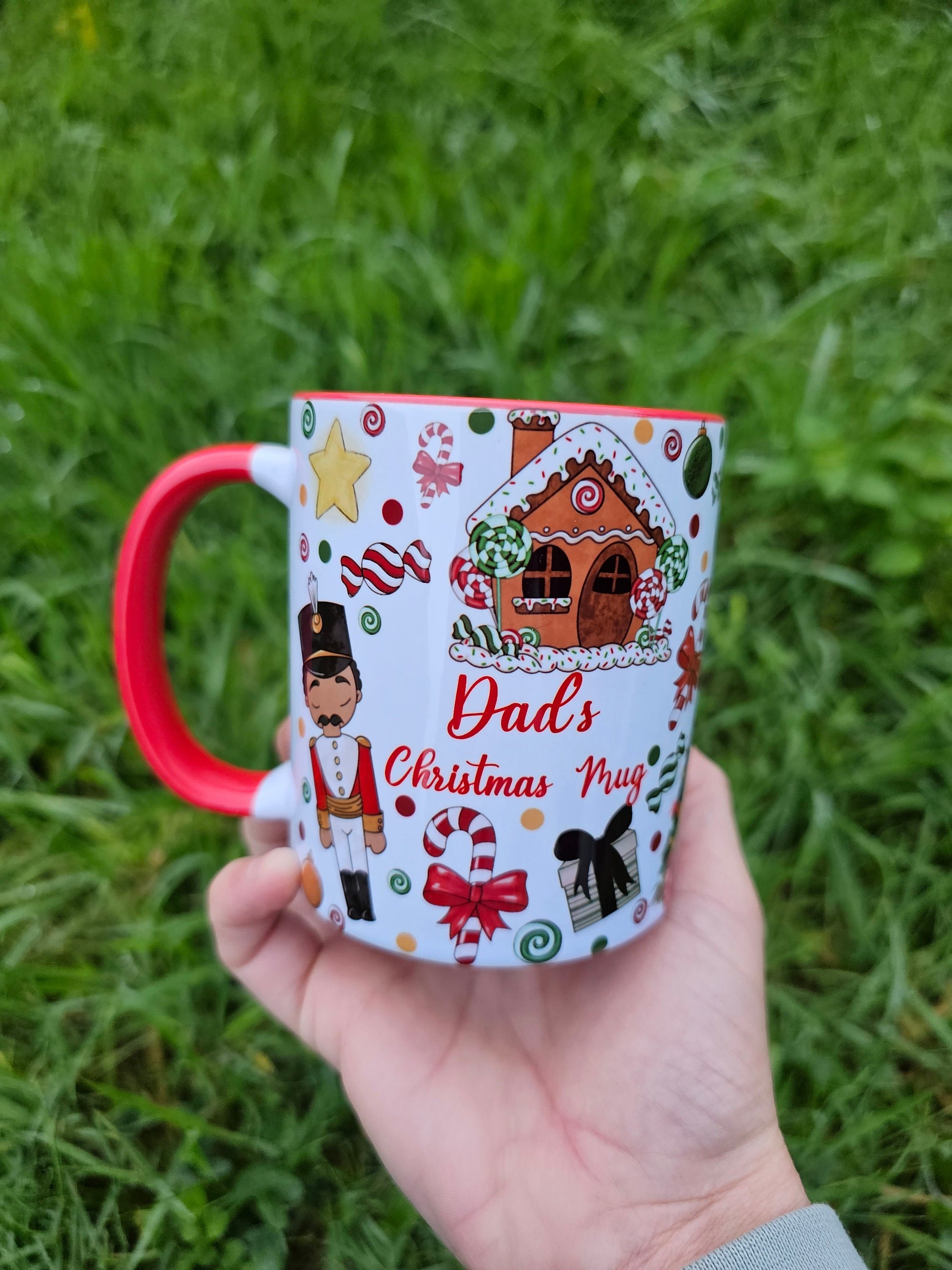 Christmas Theme Mug, Red Handle Personalised Xmas Family Mug, Hot Chocolate Mug, Xmas Eve Movie Mug, Childrens Xmas Mug