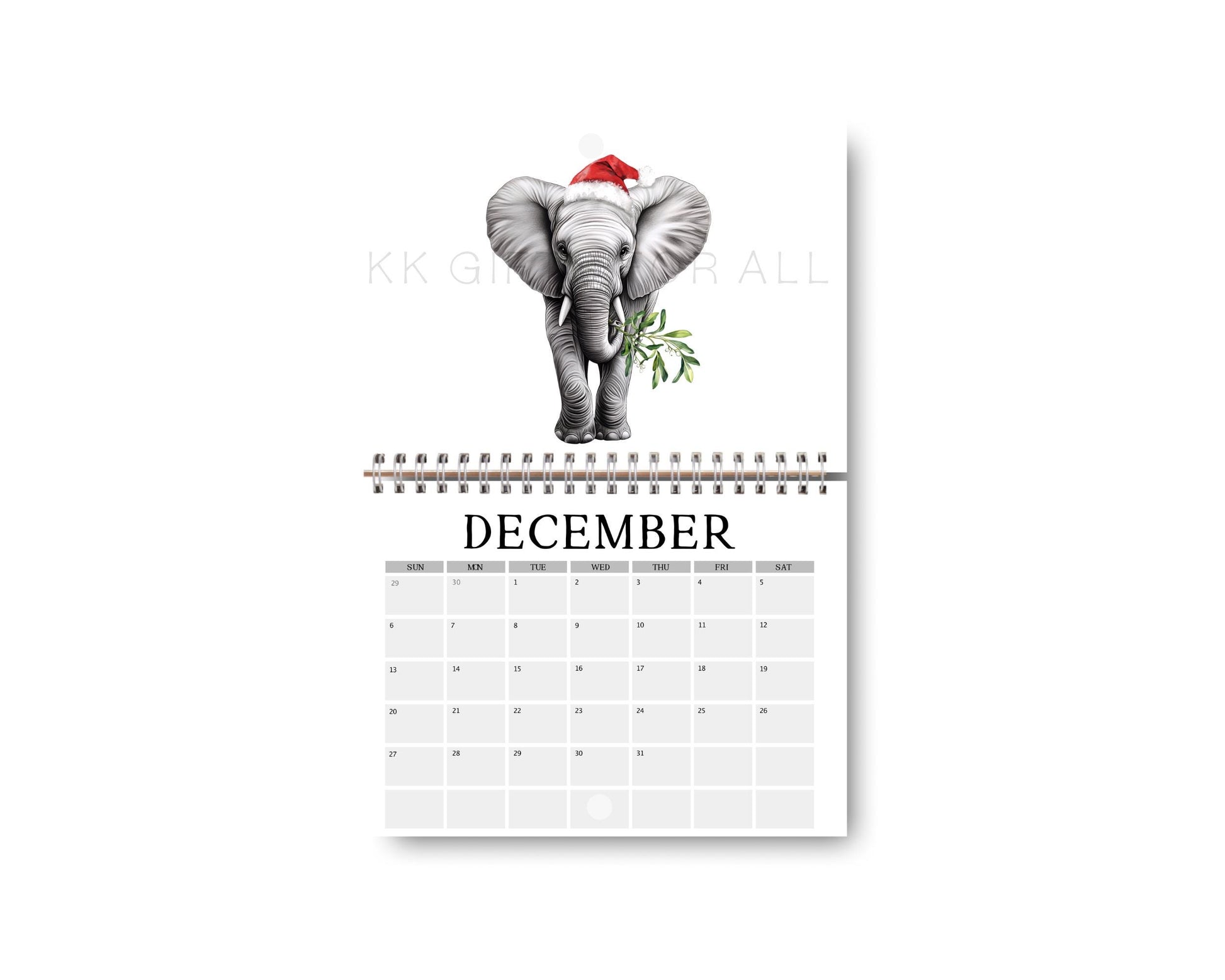Each month has a month to view calender grid on a full A4 sheet with a different Elephant inage for each month. Includes hand drawn artwork. Room to write down important birthdays or events. This calendar will look perfect in any home or office.