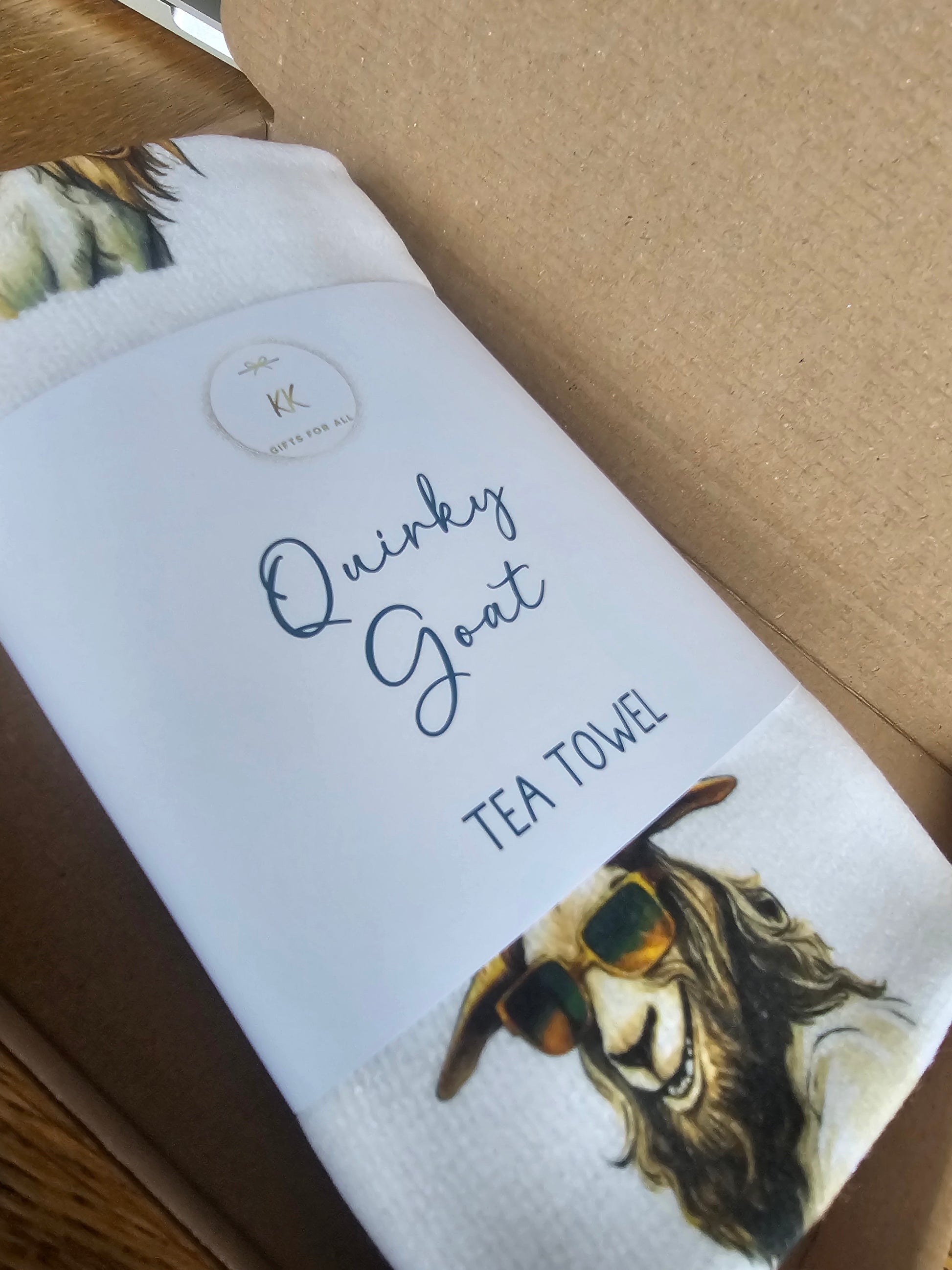 Funny Goat Tea Towel, Personalised Kitchen Towel, Quirky Goat Home Decor Gifts