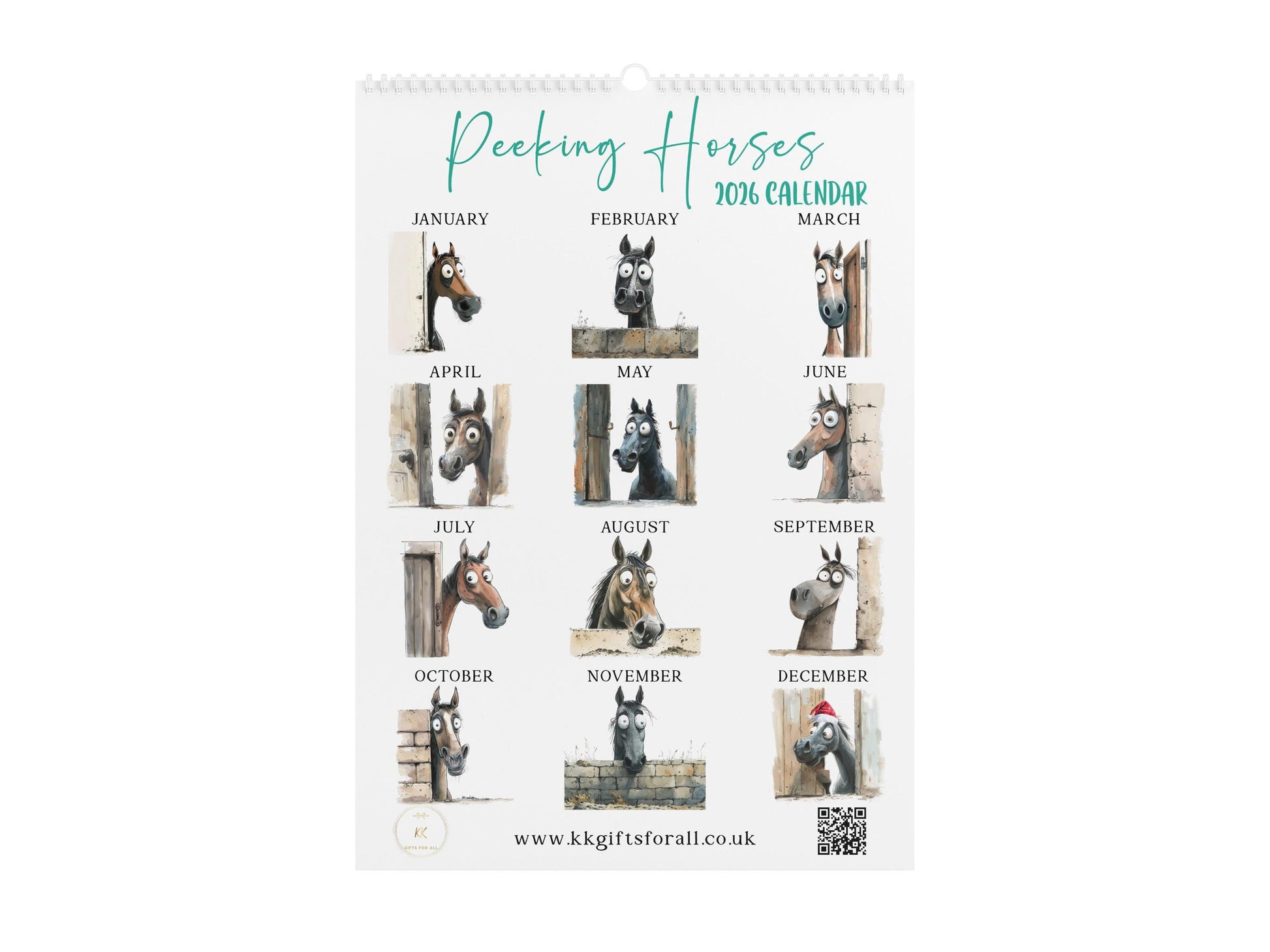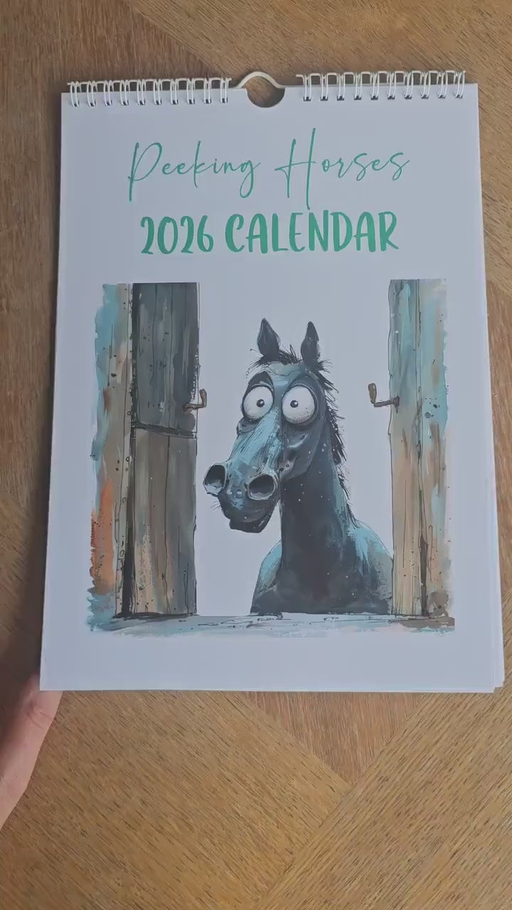 Funny Peeking Horse 2026 Wall Calendar, Whimsical Home & Office Decor, A4 Monthly Planner
