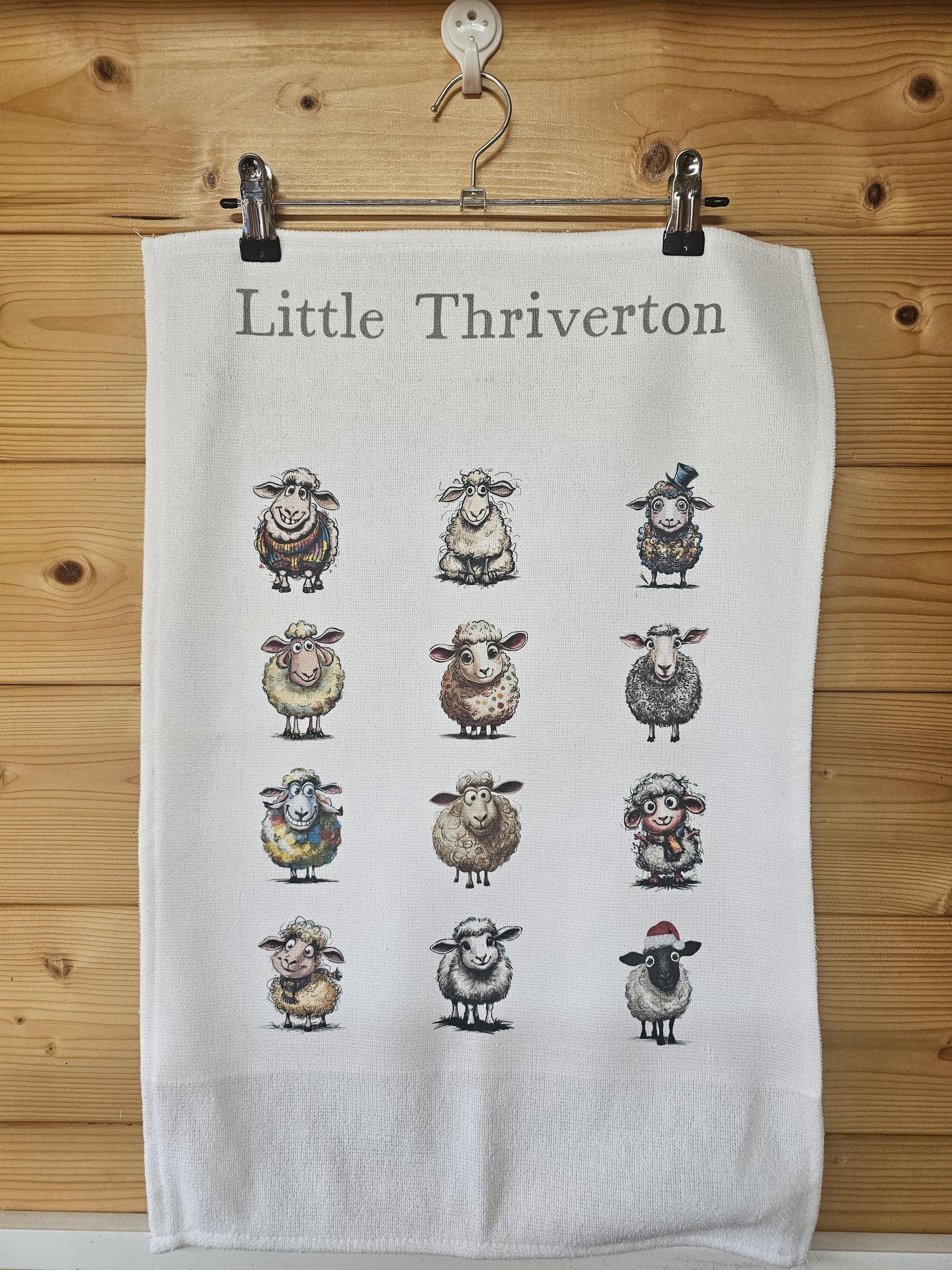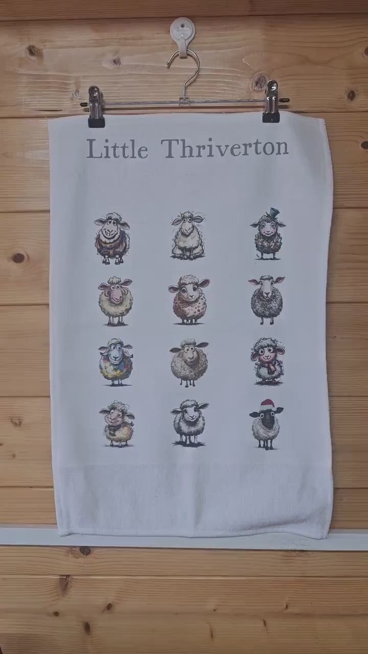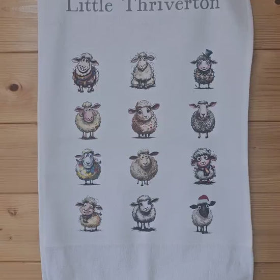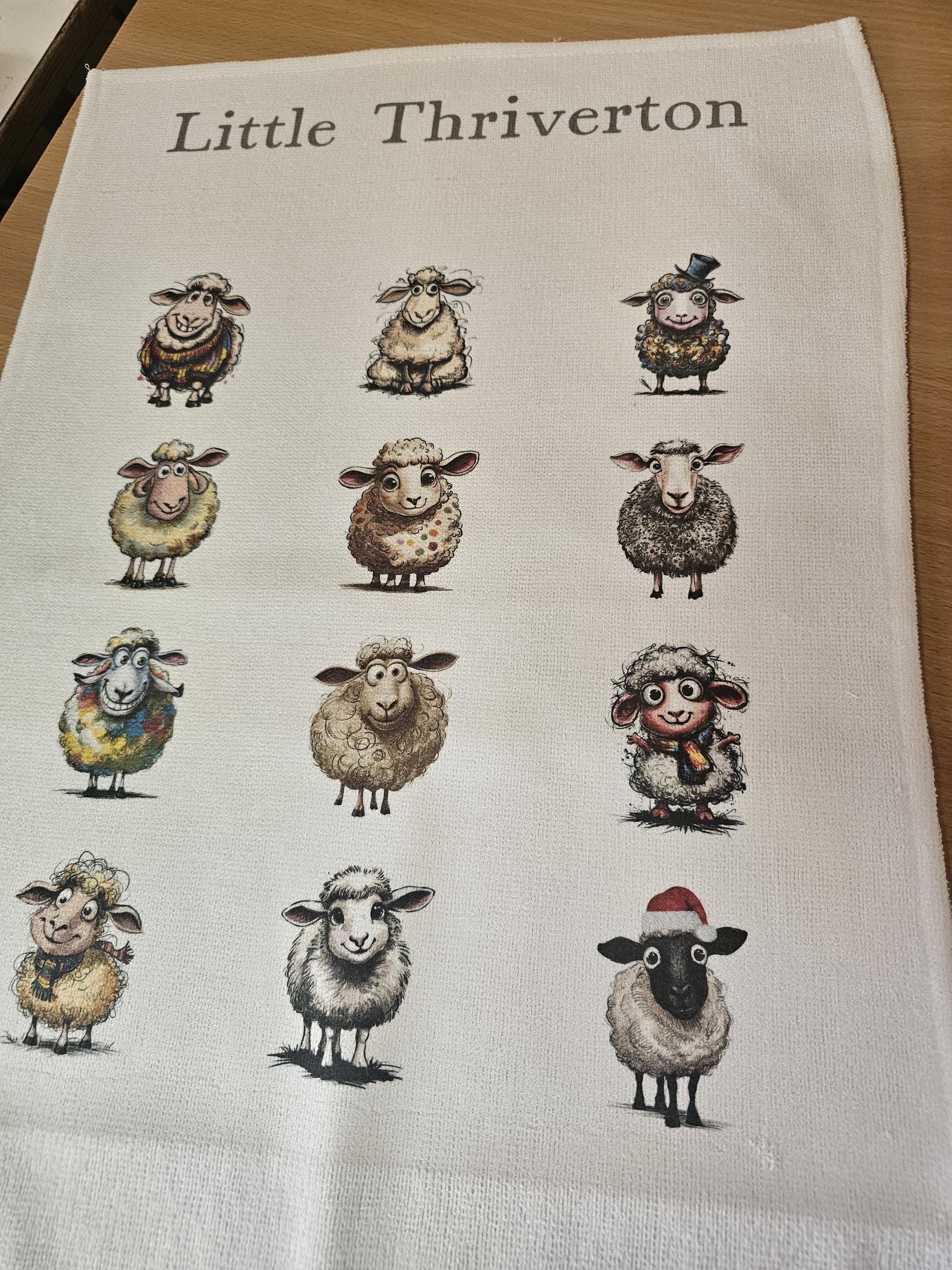 Quirky sheep artwork printed on a soft cotton polyester tea towel