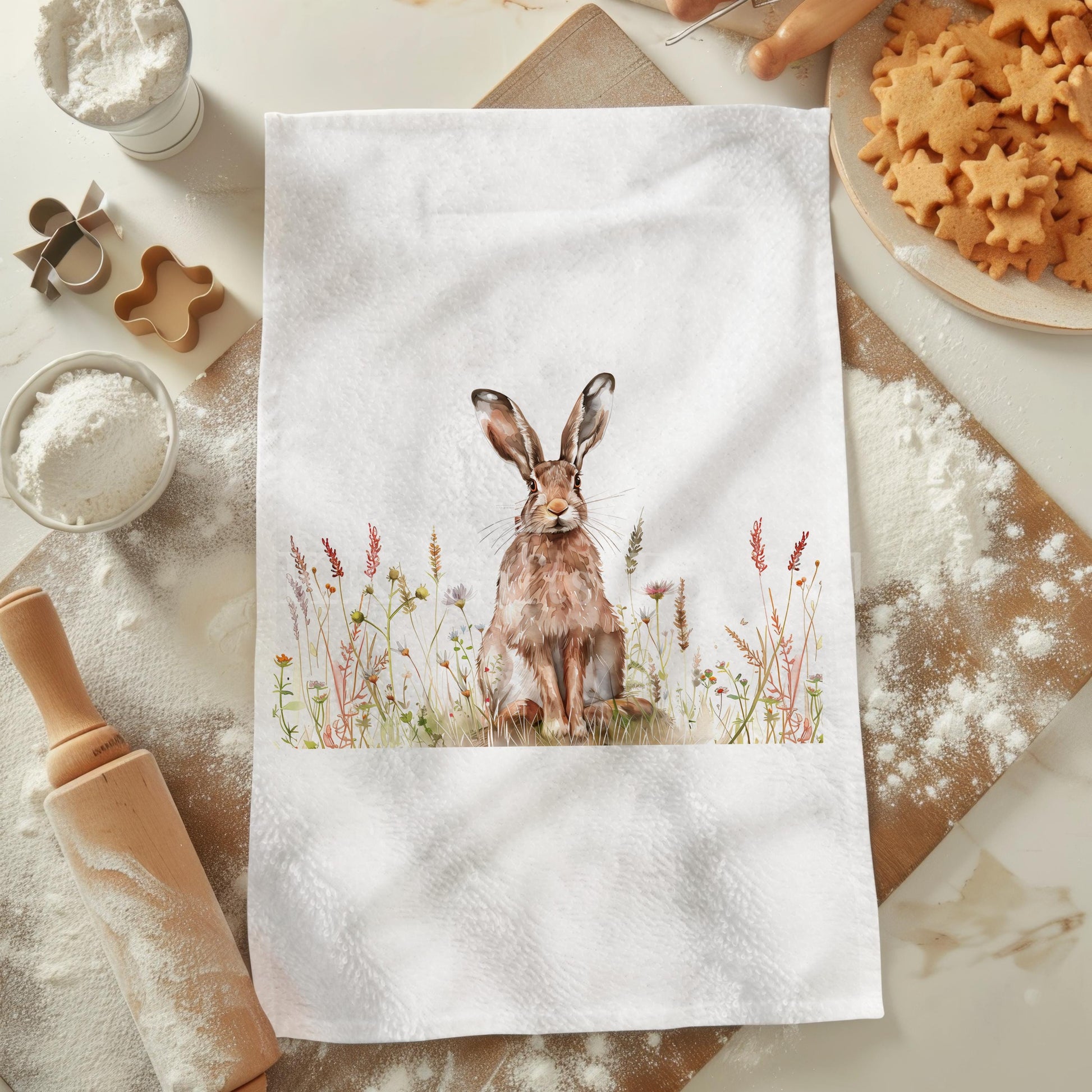 Hare Tea Towel, Personalised Kitchen Towel, Wildflife Hare Kitchen Decor