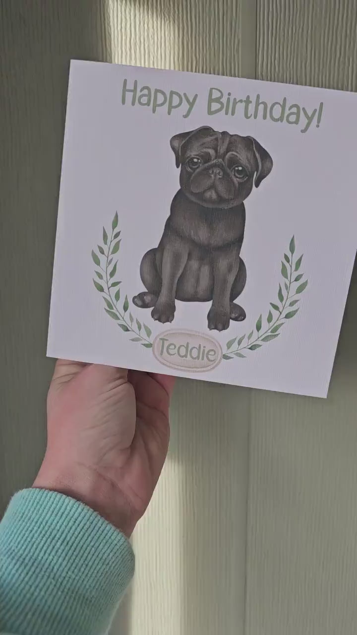 Personalised Black Pug Birthday Card, Birthday Card For Pug Lover, Pug Greetings Card, Card From Pug Pet Dog