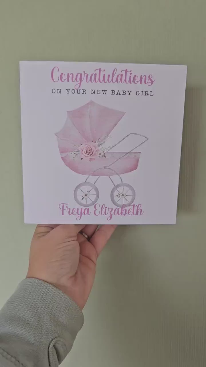 Congratulations in your new baby girl card. personalised baby girl card. Card for parents of a baby girl.