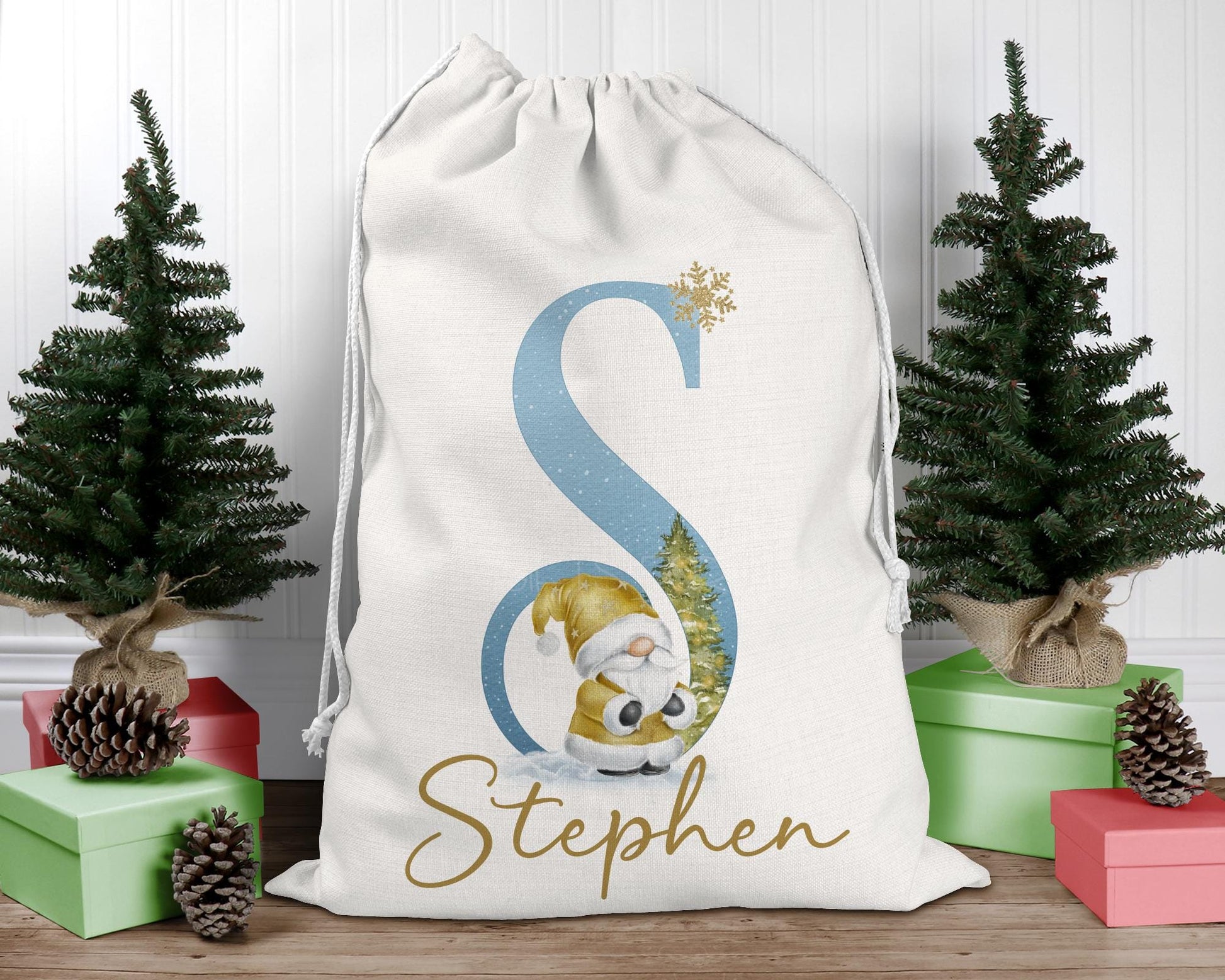 Make Christmas morning magical with our Personalised Christmas Sack! Featuring a charming holiday gnome, a snowy evergreen, and a large monogram letter, this custom sack adds a whimsical and personalized touch to your gift-giving.