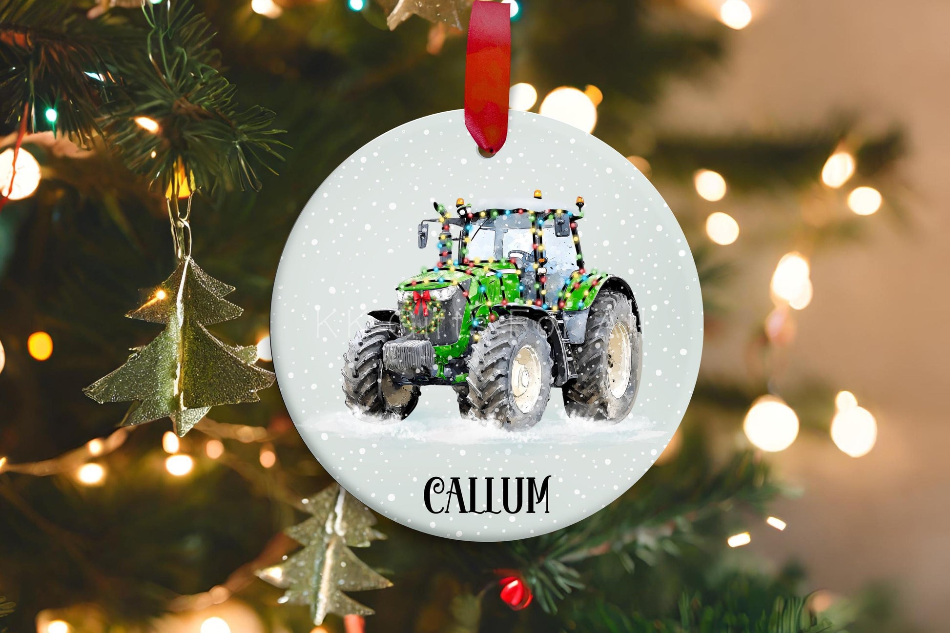 Personalised Christmas Tractor Decoration, Green Tractor Christmas Hanging Ornament