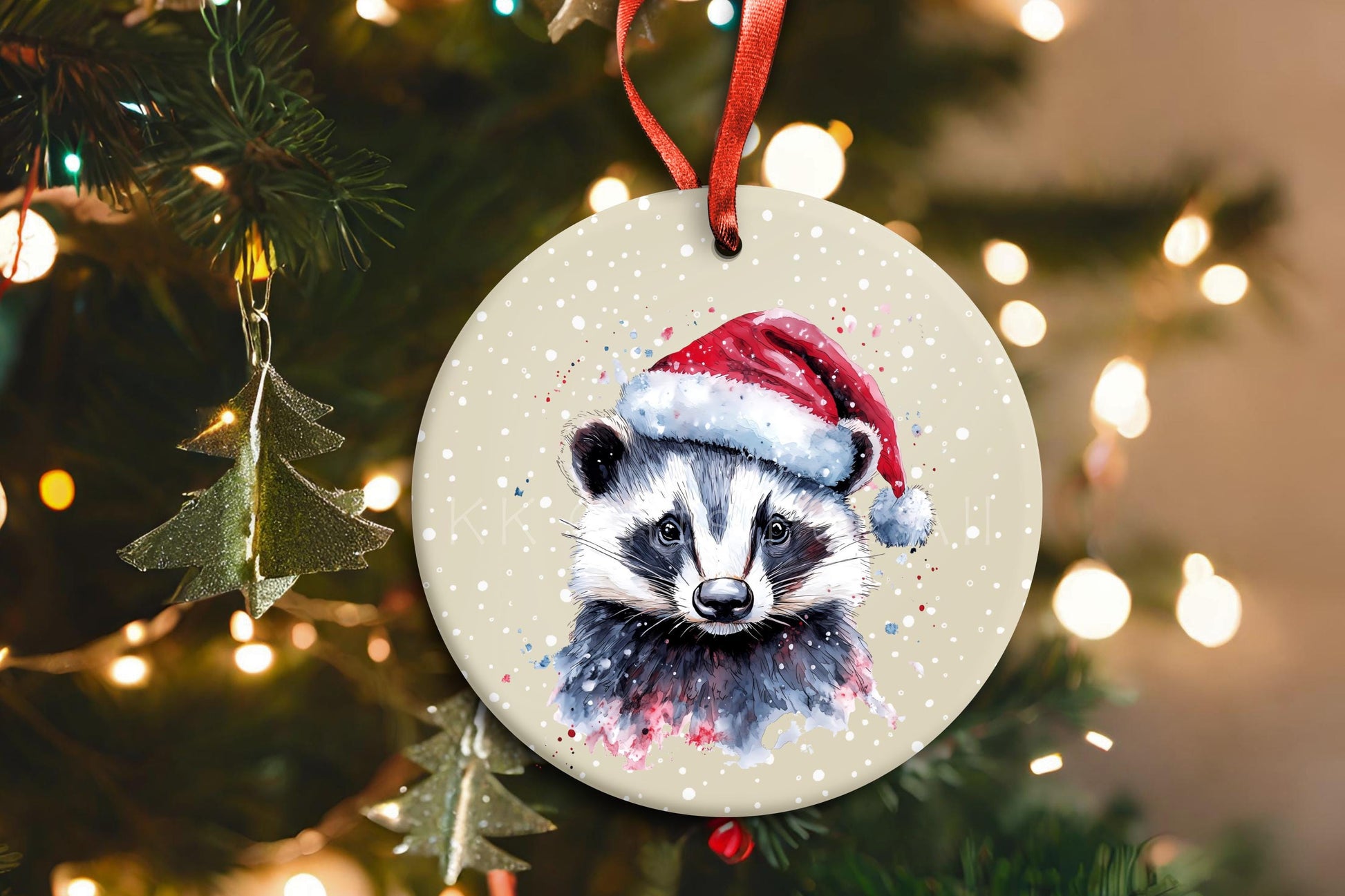 Personalised hanging christmas tree decoration - Christmas badger