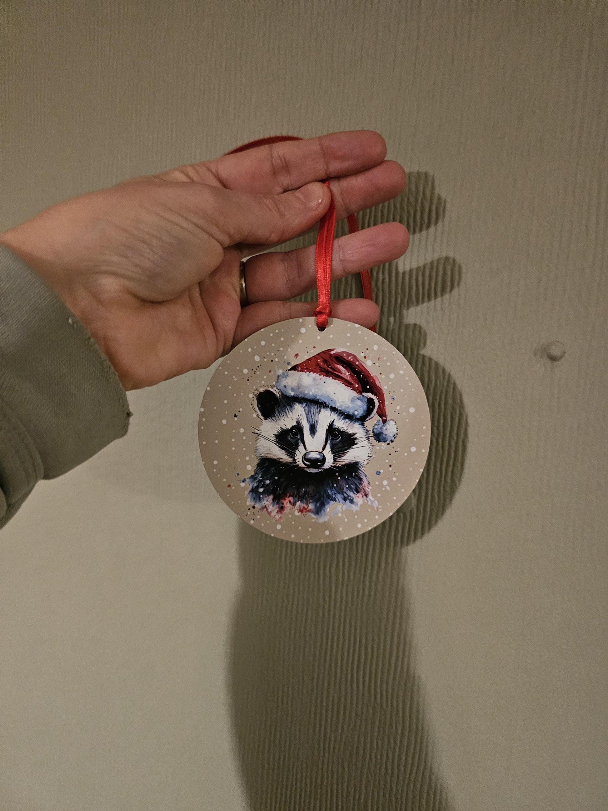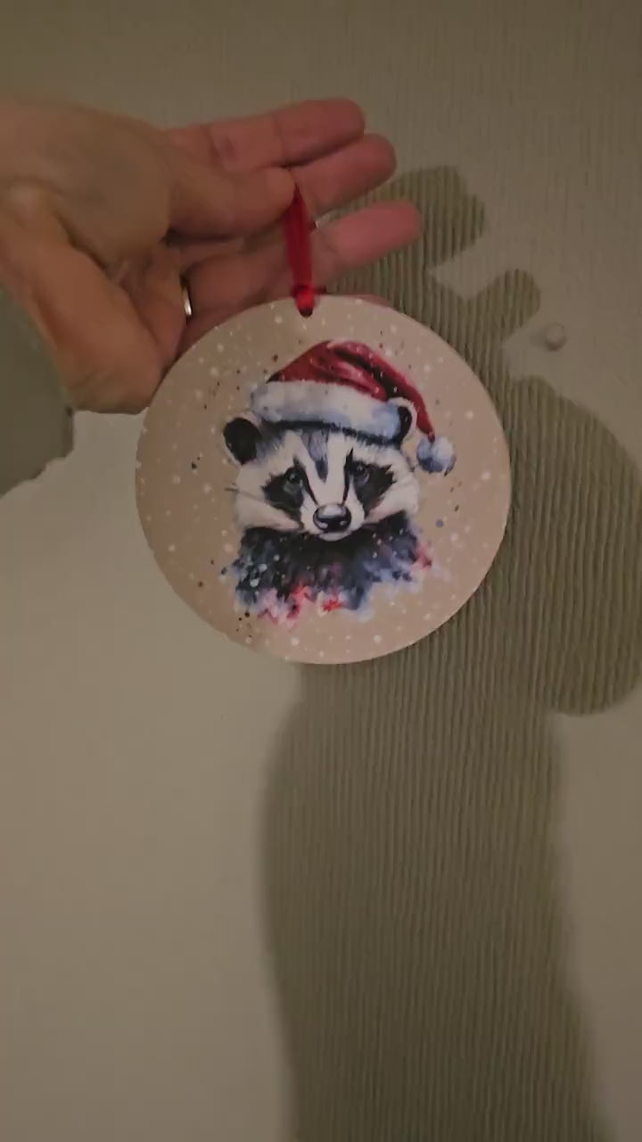 Round christmas tree ornament. Keepsake christmas decoration. Gift for someone to hang on their christmas tree each year. Christmas tree decoration. Christmas 2024 keepsake ornament. Round metal bauble is perfect for hanging on a christmas tree or around the house to give it that festive feel and would also make a lovely christmas gift and a great keepsake. Lovely gift for anyone who loves badgers or wildlife animals.
