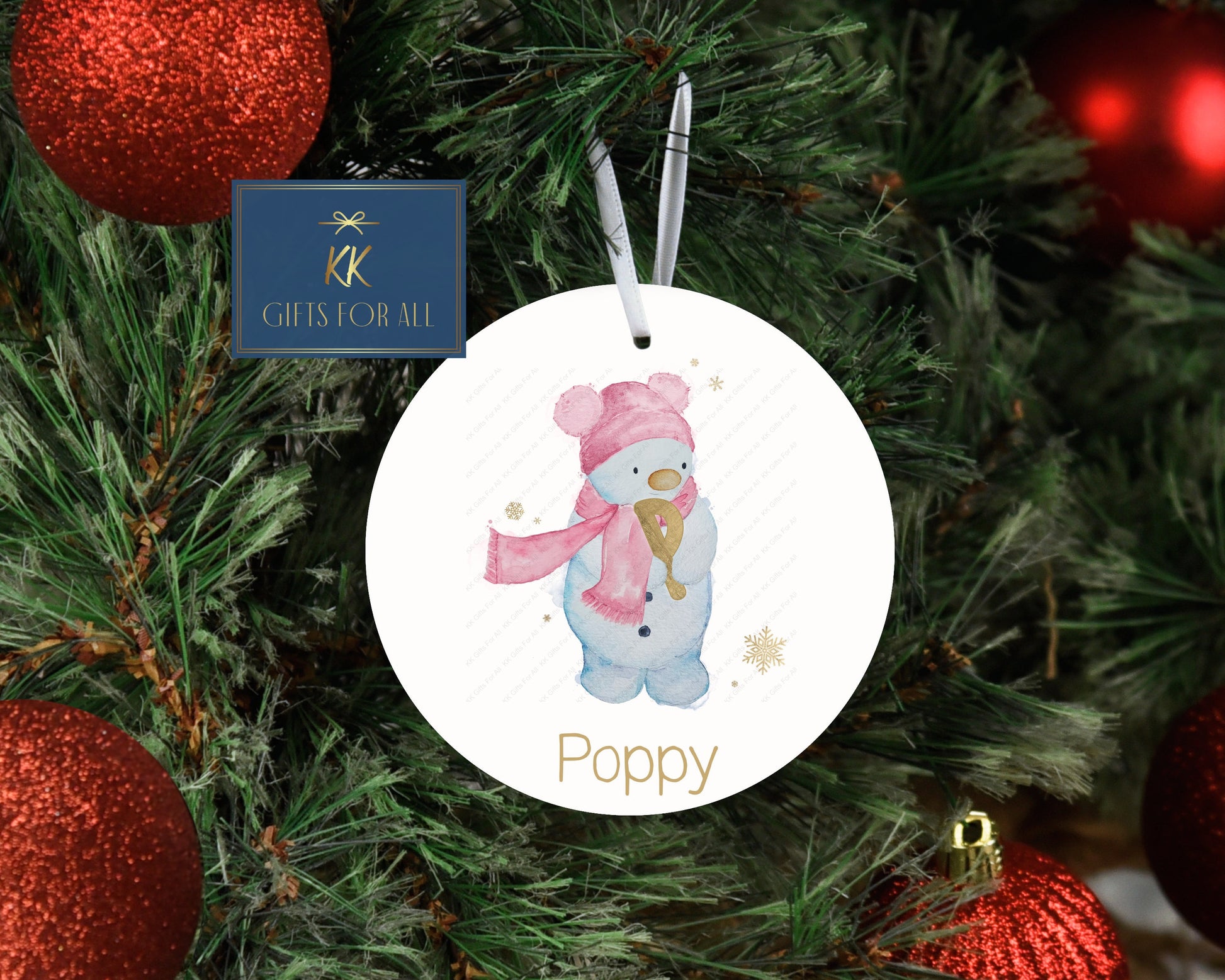 Personalised Christmas Tree Decoration, Christmas Hanging Ornament, Metal Tree Decoration, Snowman Christmas Decoration