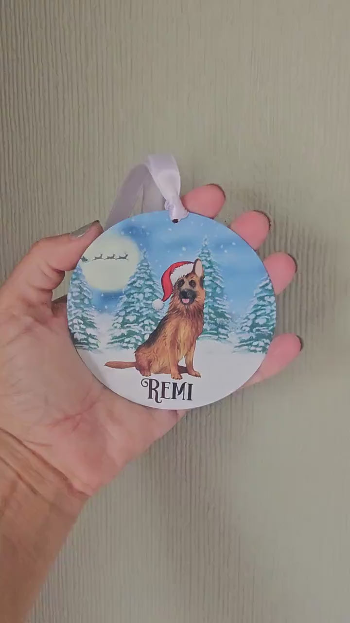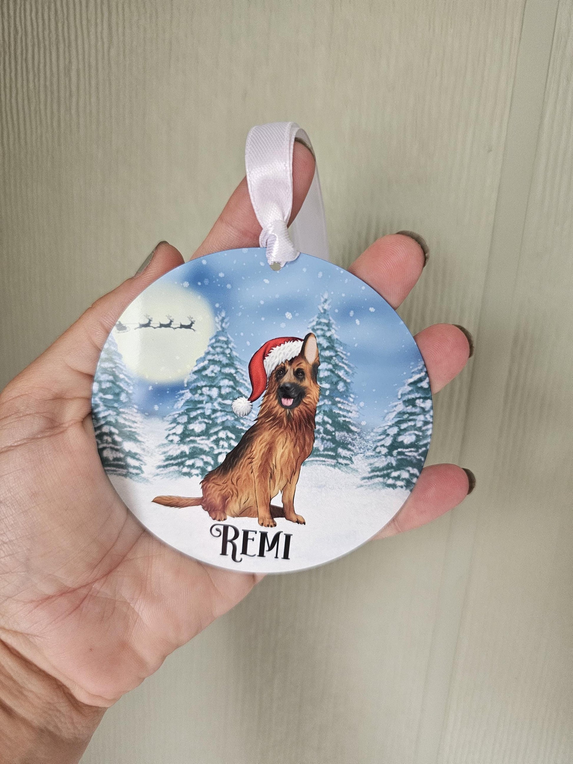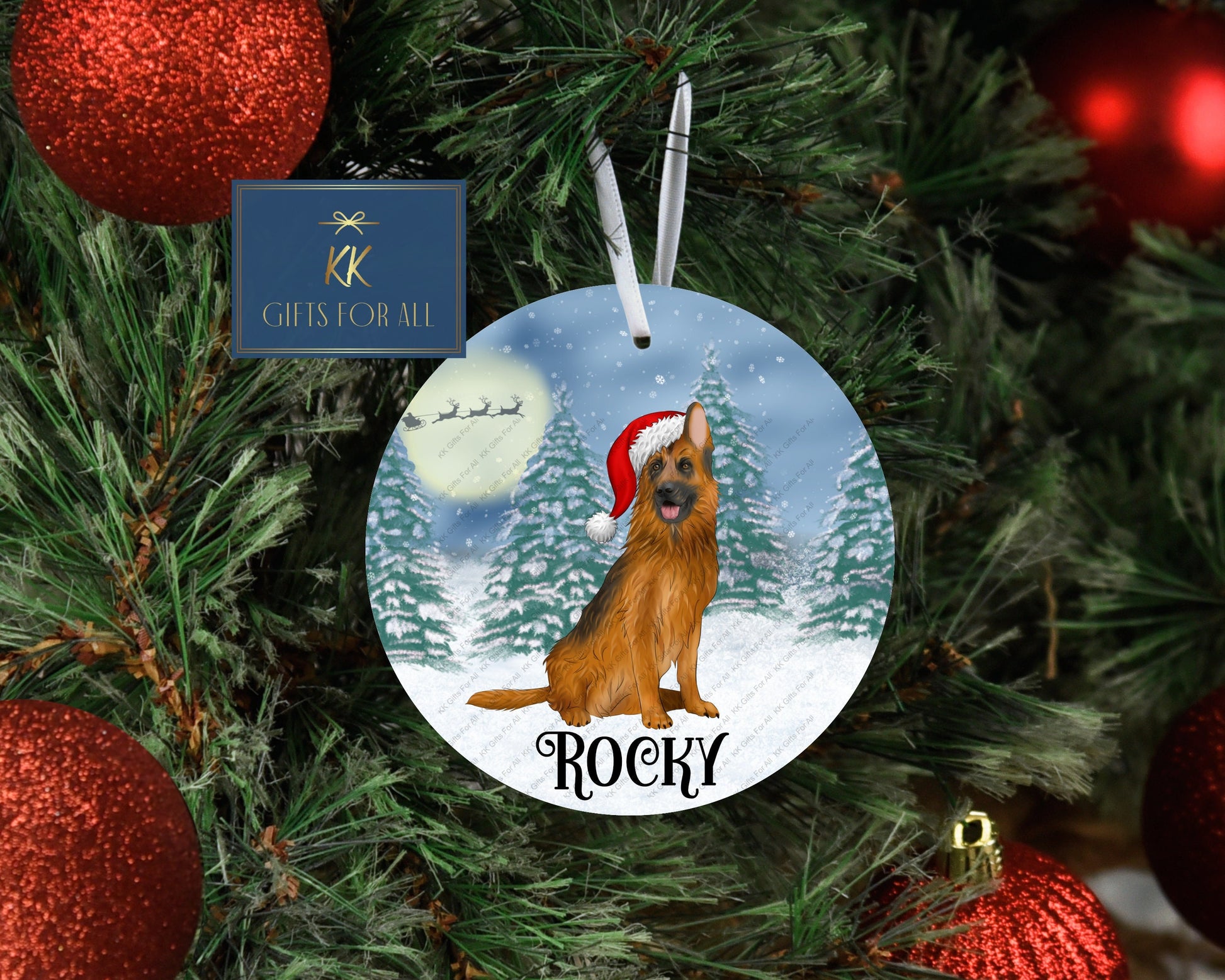Personalised Christmas Tree Decoration, German Shepherd Xmas Dec, Black & Brown Shepherd Christmas Hanging Ornament, Metal Tree Decoration,