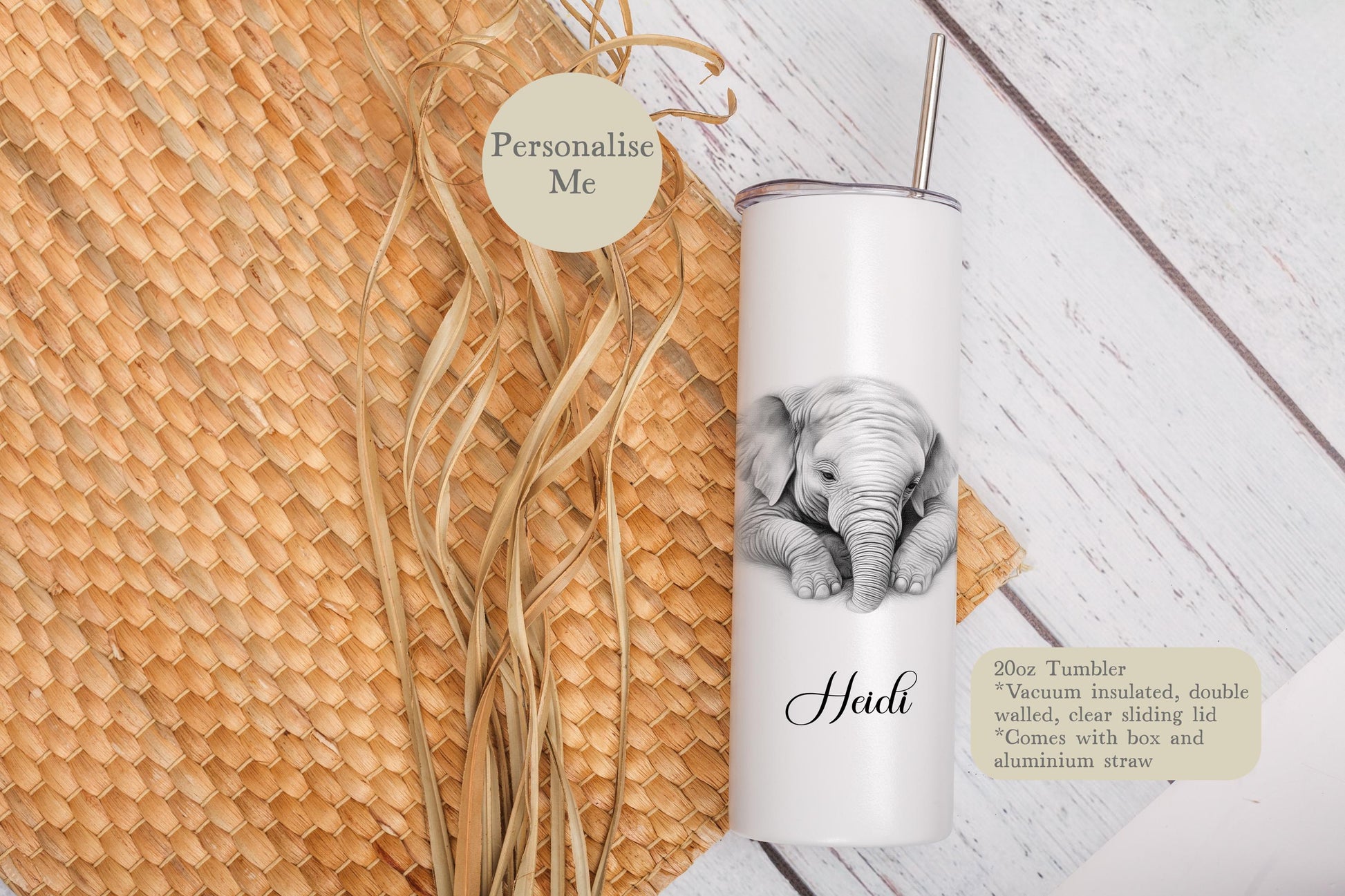Personalised Elephant Tumbler: 20oz Insulated Hot/Cold Drinkware