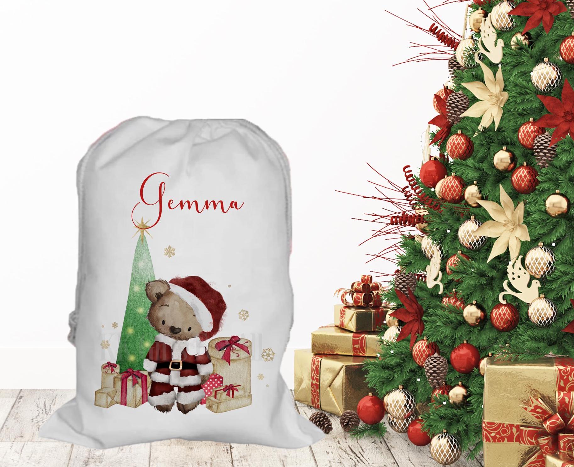 Personalised Father Christmas Santa Sack, Large Christmas Sack, Christmas Present Bag, Christmas Bear Santa Sack