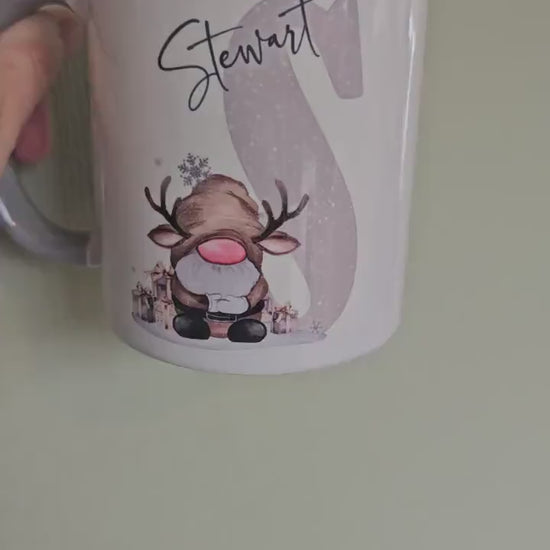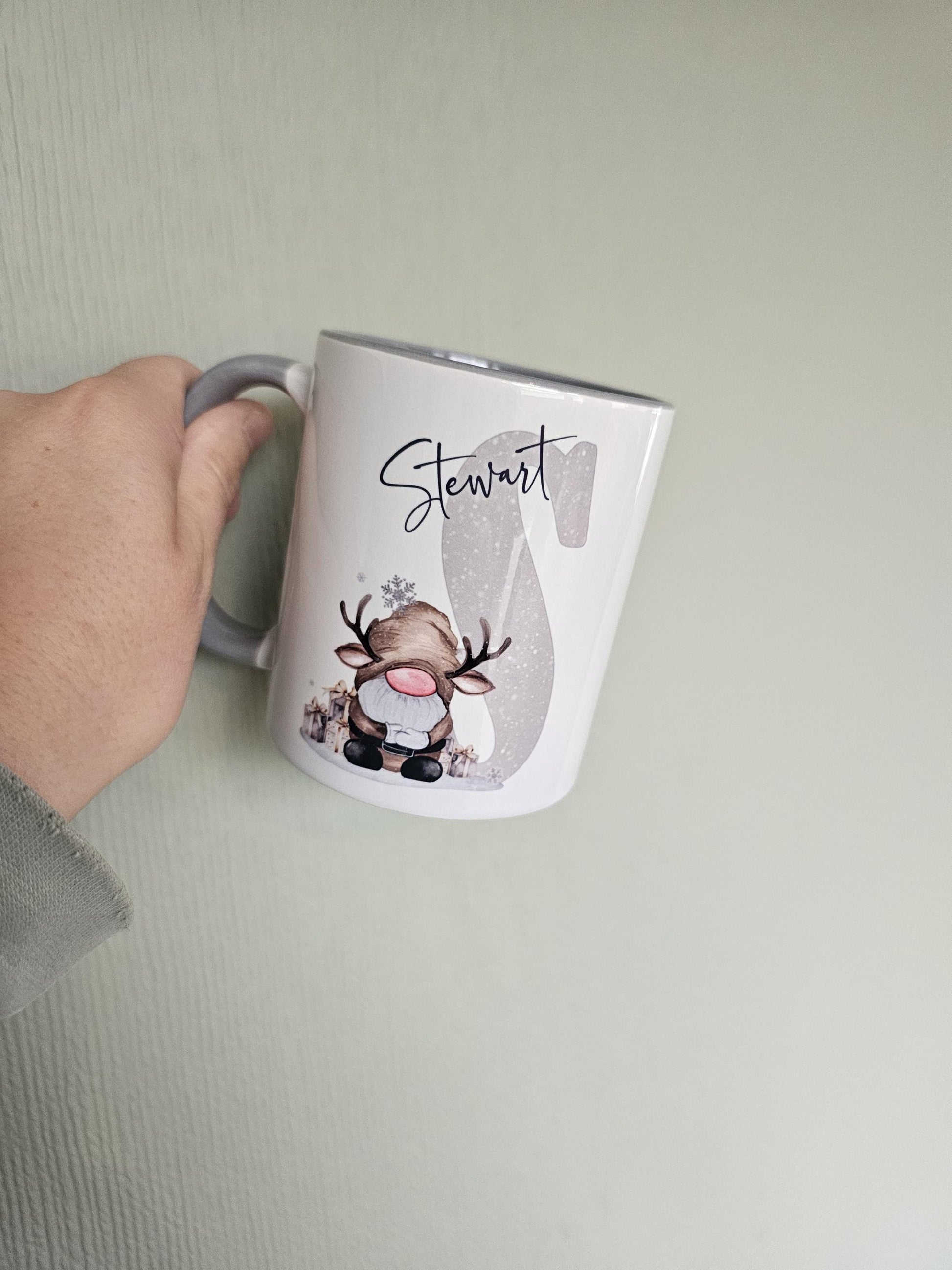Personalised Christmas Reindeer Gonk Mug with name and initial