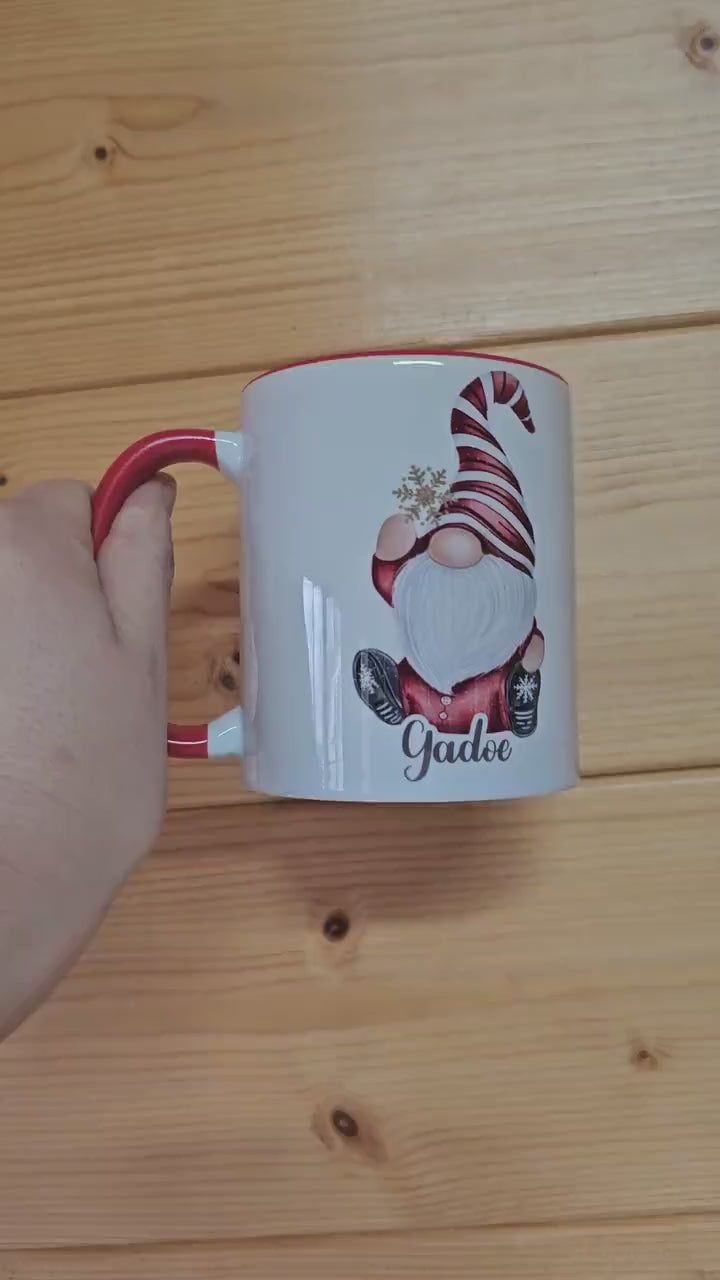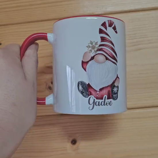 Gift for mum, friends, colleague, co worker secret santa. Family Christmas mugs. Christmas male gonk gnome mug. Christmas eve box mug for teens. Gift for someone who loves gonks. Personalised with name. Red handle Gonk mug - matching coaster available. Gift for wife or girlfriend.