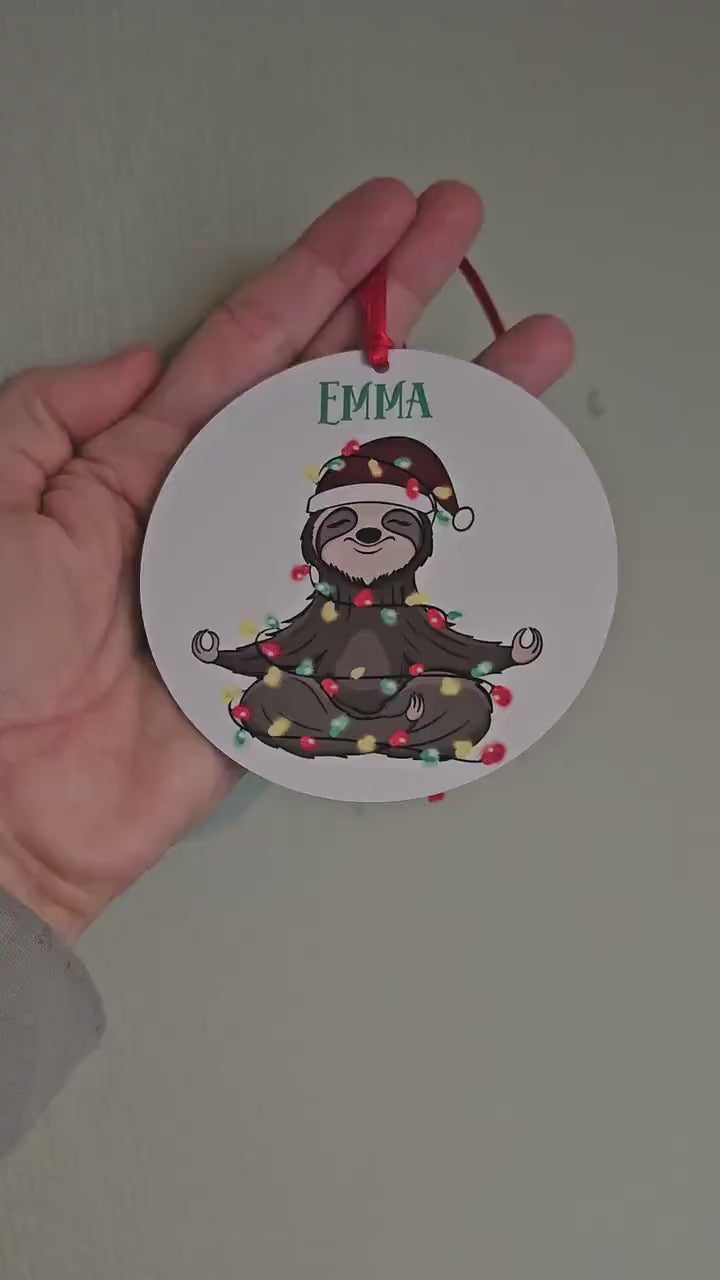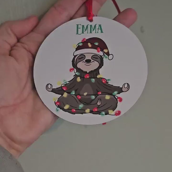 Personalised Sloth Christmas Tree Decoration, Metal Tree Ornament,
