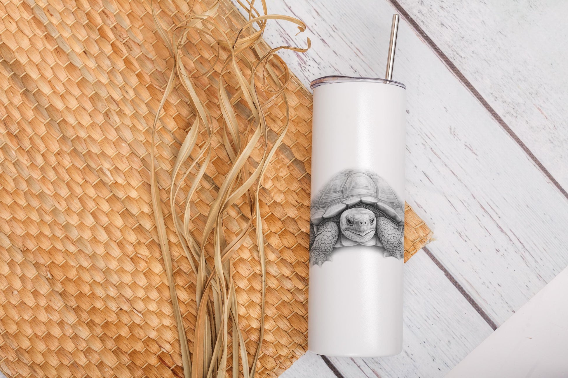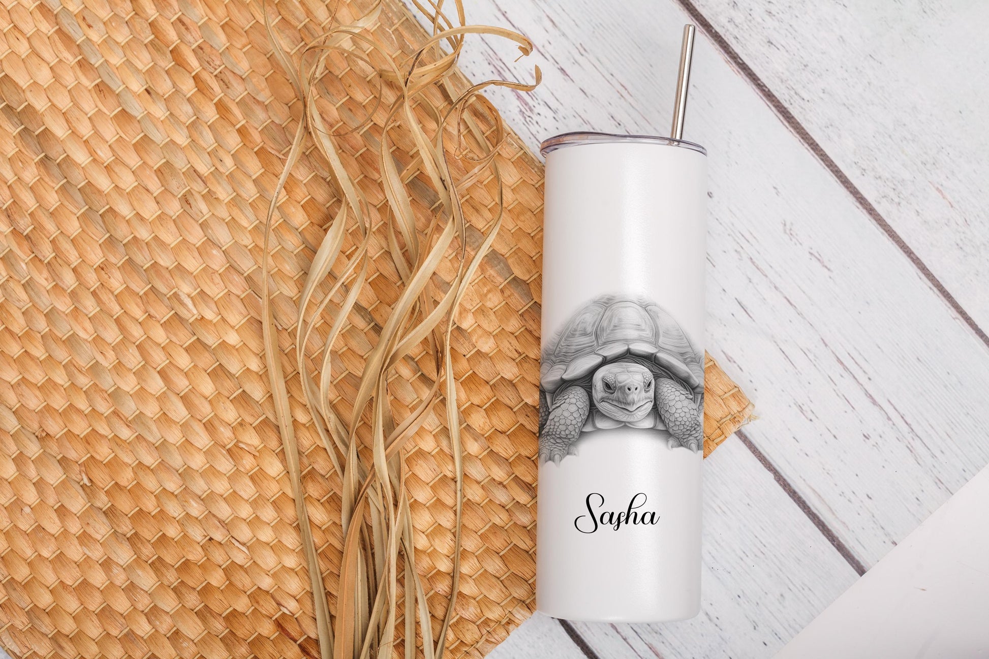 Personalised Tortoise Tumbler: 20oz Insulated Drink Bottle with Straw