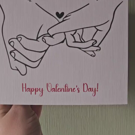 Cute Valentines day card for wife, girlfriend, husband or boyfriend. Card to show your loved one how much they mean to you. Connected hands valentines day card.