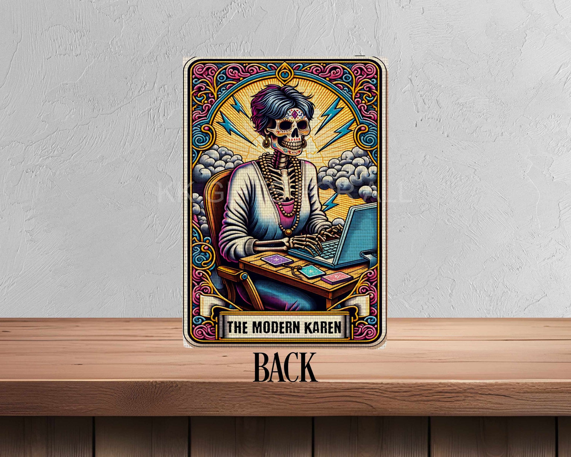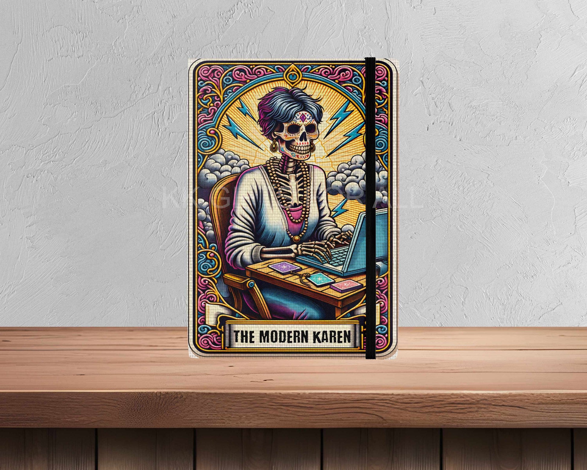 Gift for friends birthday. Skeleton gifts. Tarot style card design on linen look notebook. Bright colourful notebook. Adult Humour gifts. Don't we all know a Karen who this would make the perfect gift for?