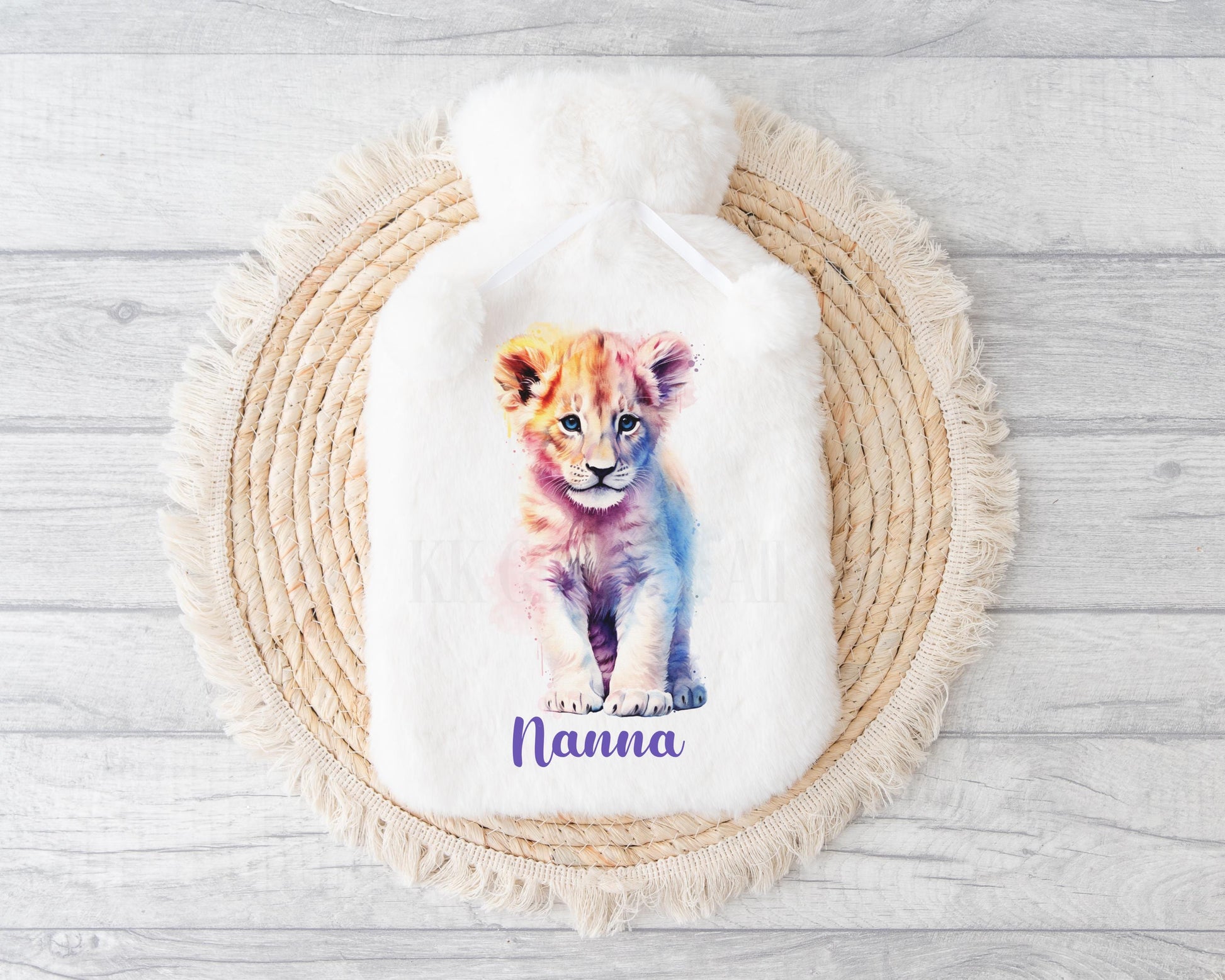 Watercolor Lion Hot Water Bottle, Personalised Cub Lion Gift, Gifts For Mum Nan Grandma